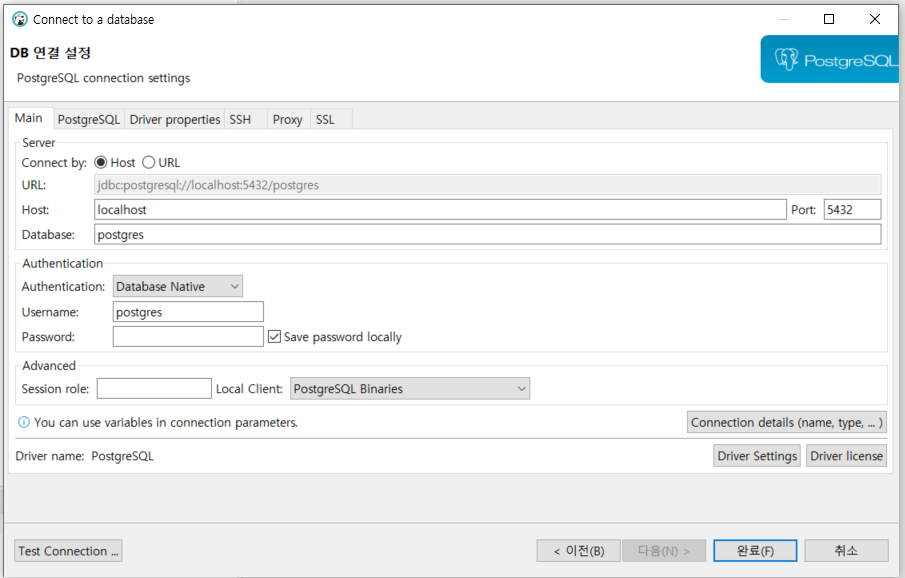 DBeaver에서 postgreSQL DB 연결하기