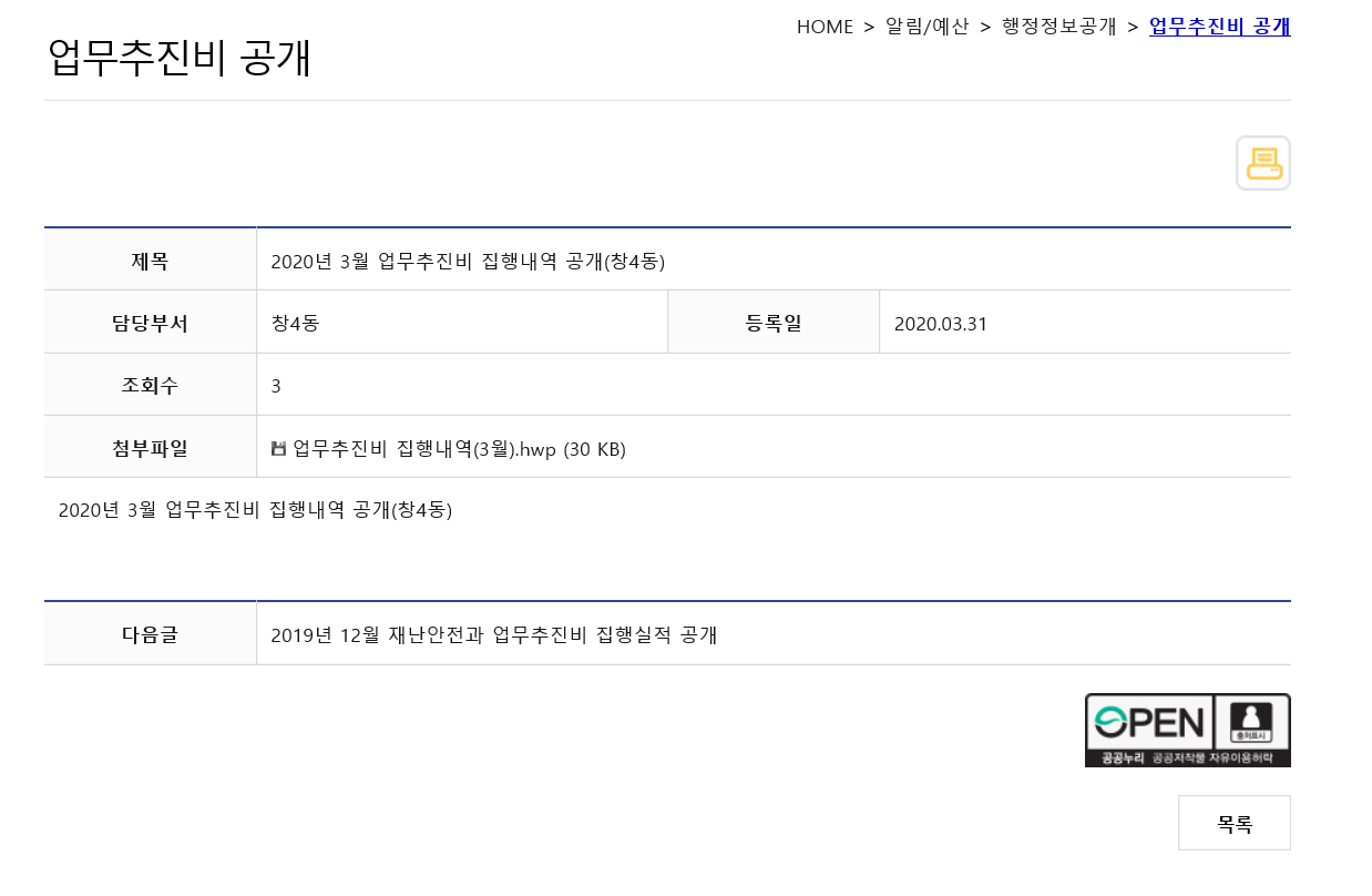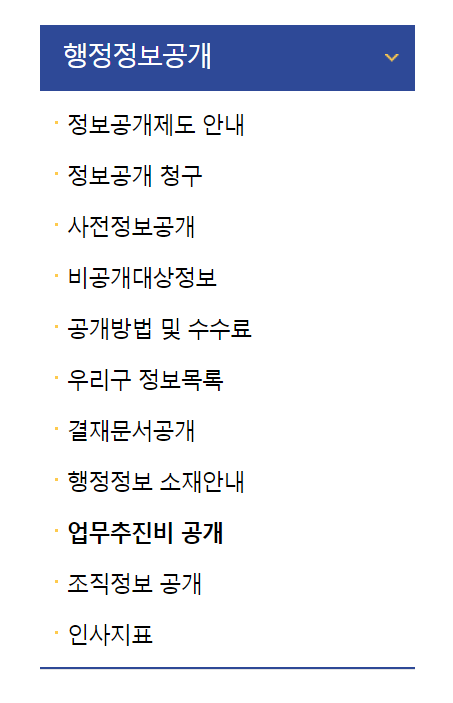 2. 여러 메뉴 중 '업무추진비 공개'를 클릭한다
